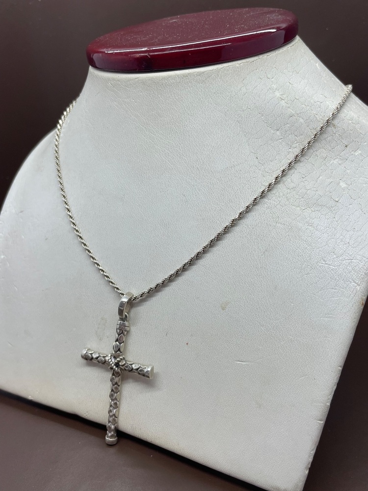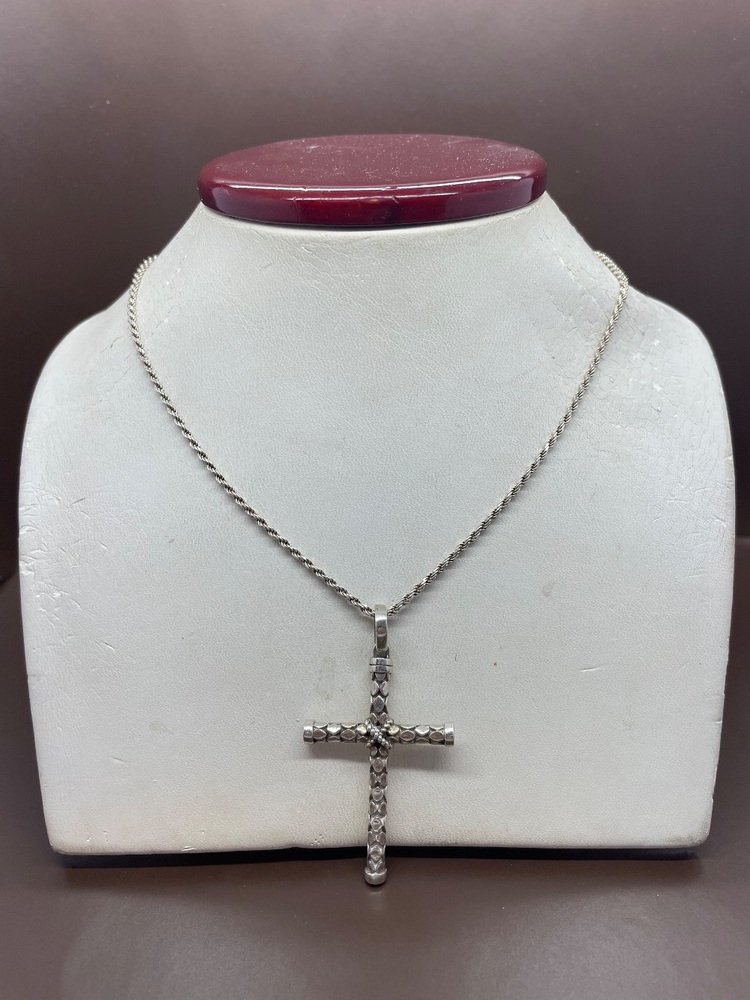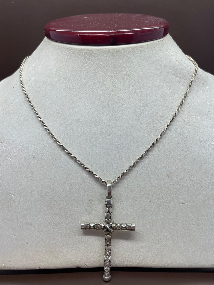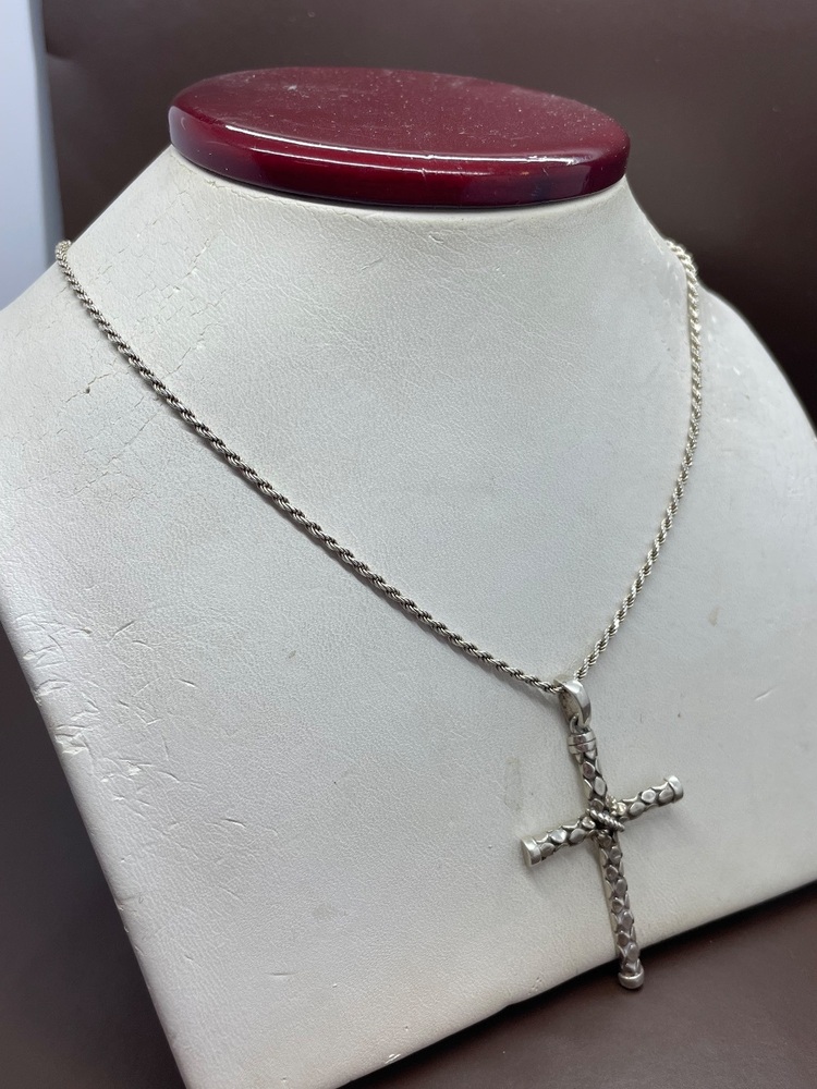 24" Sterling Silver Rope Chain With a Silver Cross Pendant | Capitol City Pawn & Jewelry