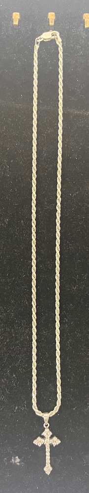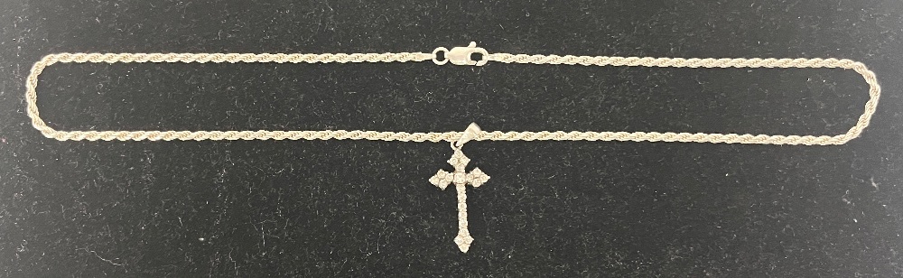 White Silver Rope Chain With Cross Pendant 925