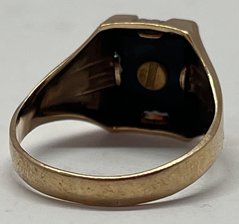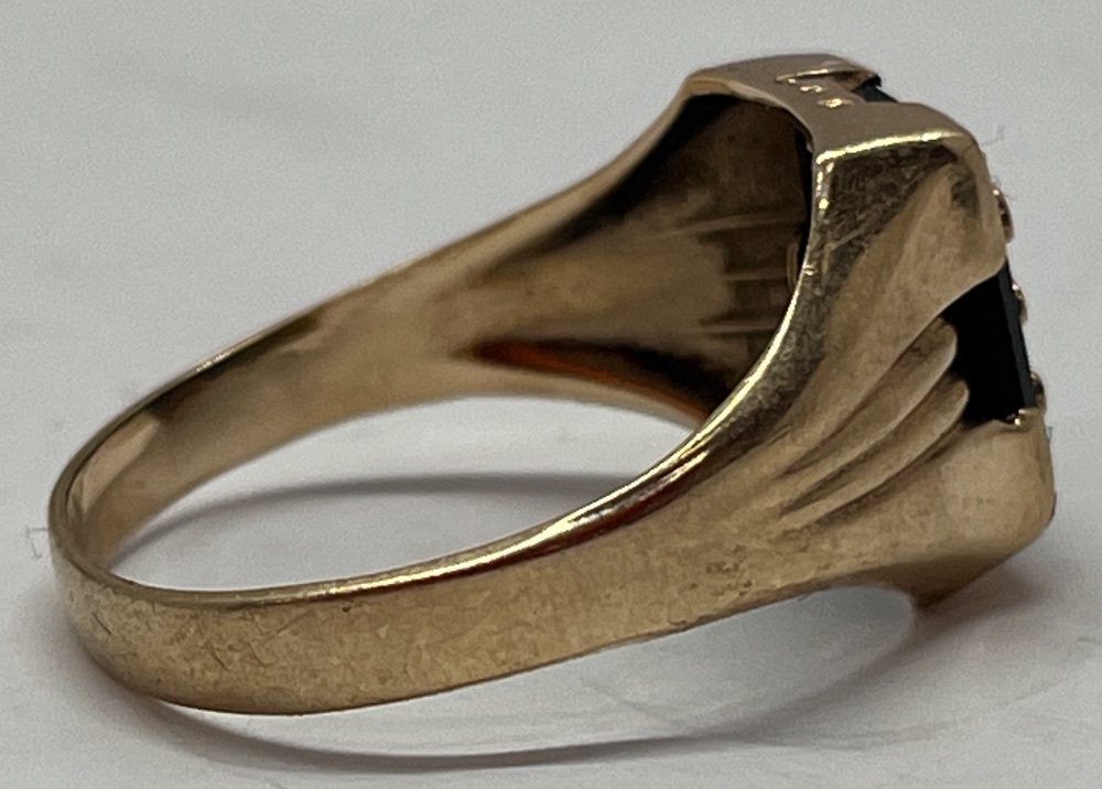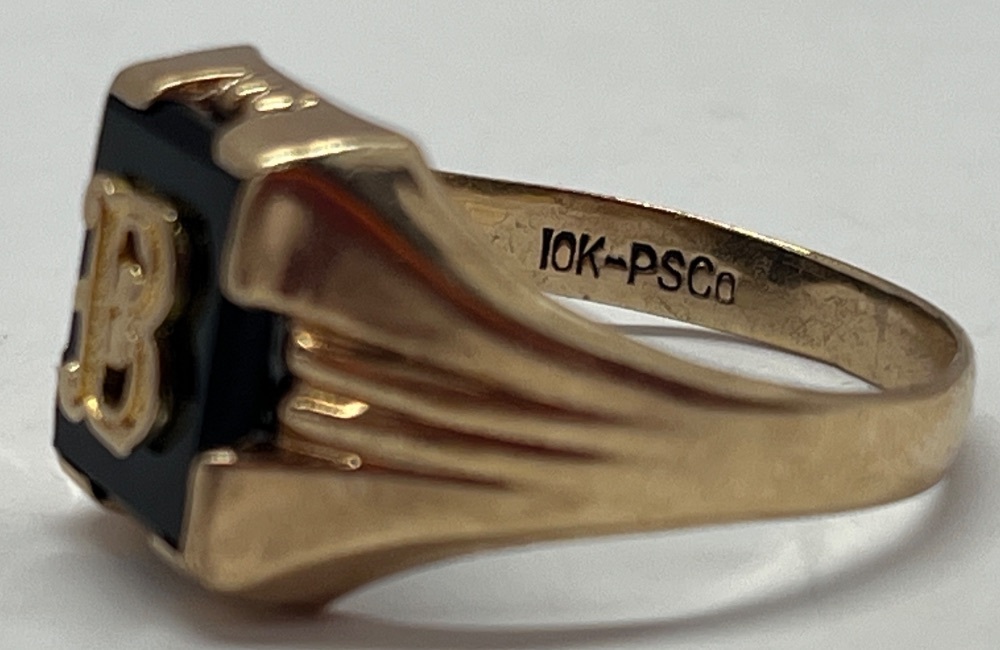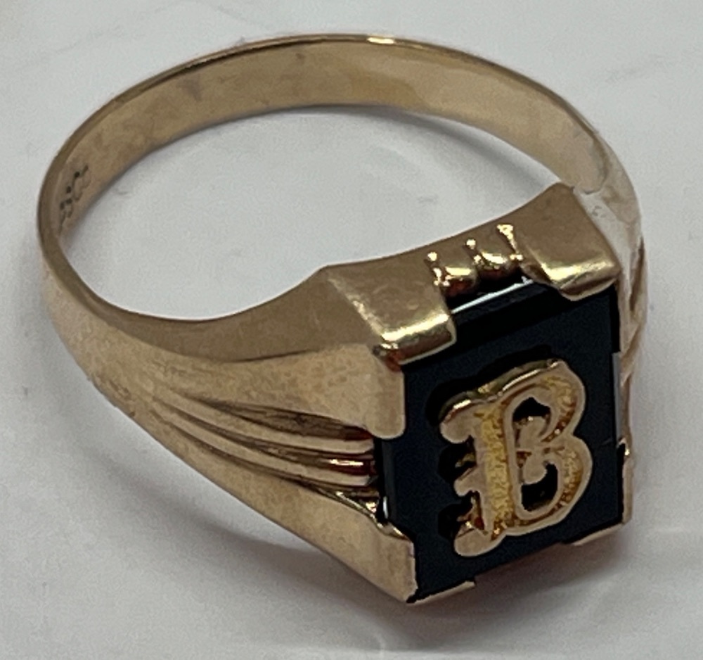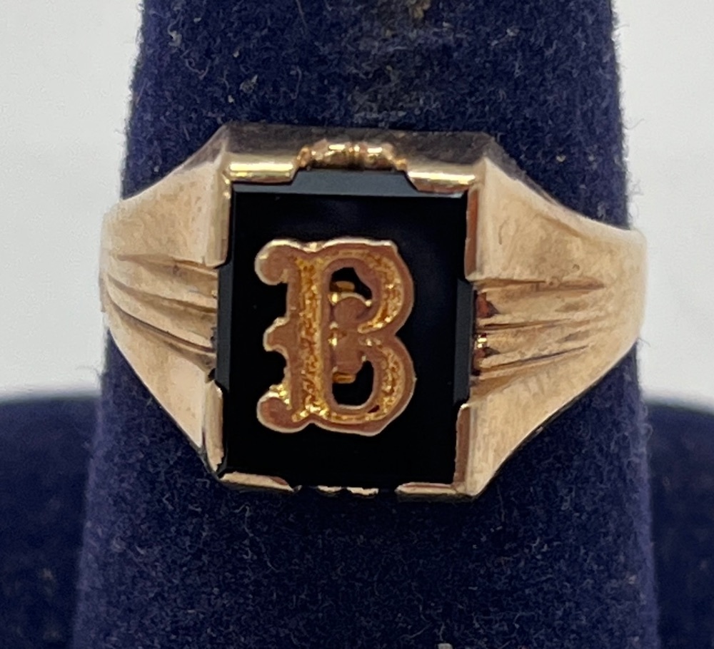 10kt Yellow Gold Black Stone "B" Ring 1.75 dwt Size: 7 | Capitol City Pawn & Jewelry
