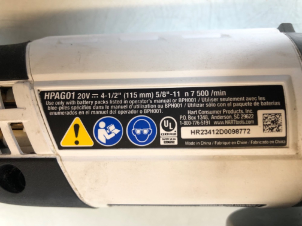 20-Volt Cordless 4 1/2-inch Angle Grinder 1 charger 1 Battery Hart HPAG01