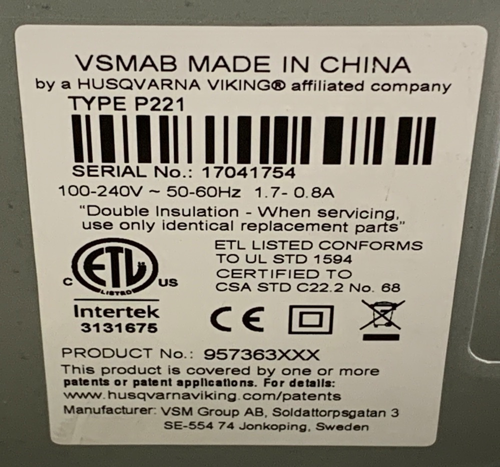 Includes: Manual, Foot Pedal, Power Cord & Extras w/Bag